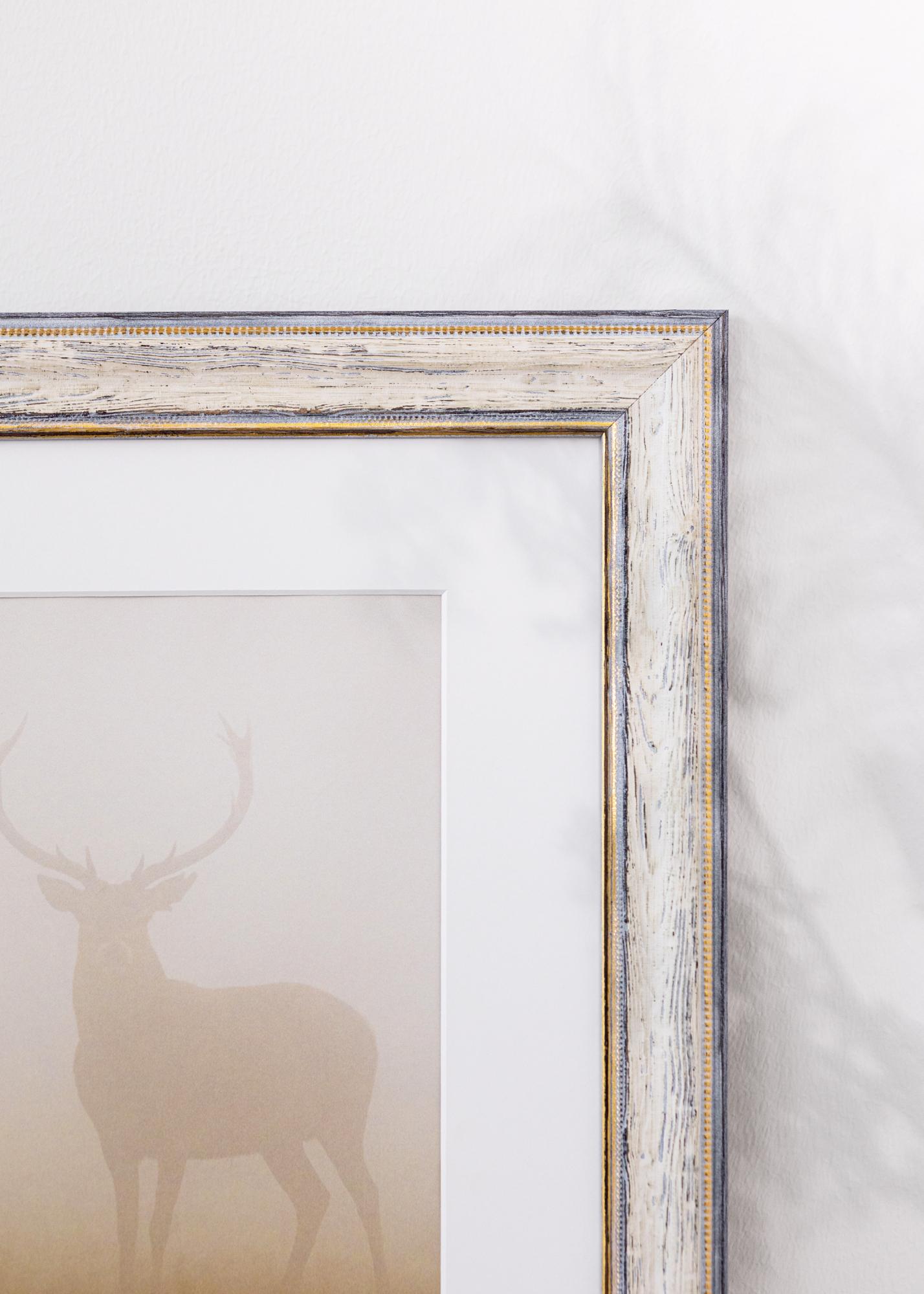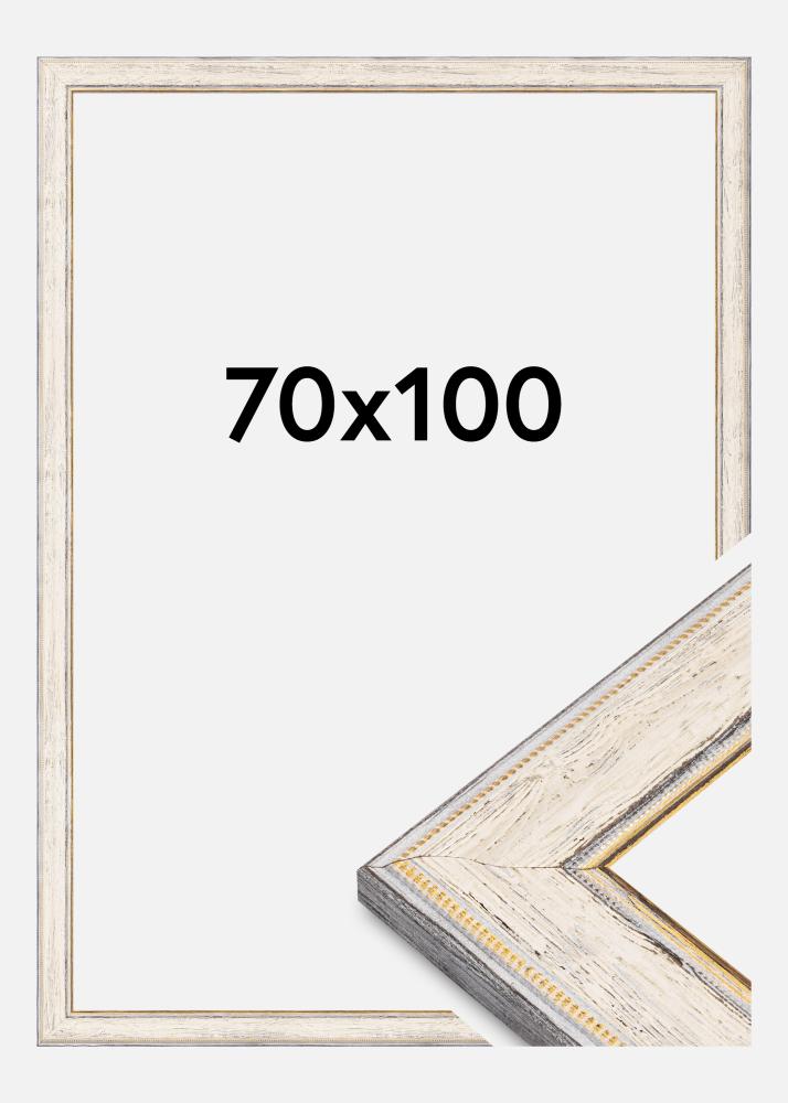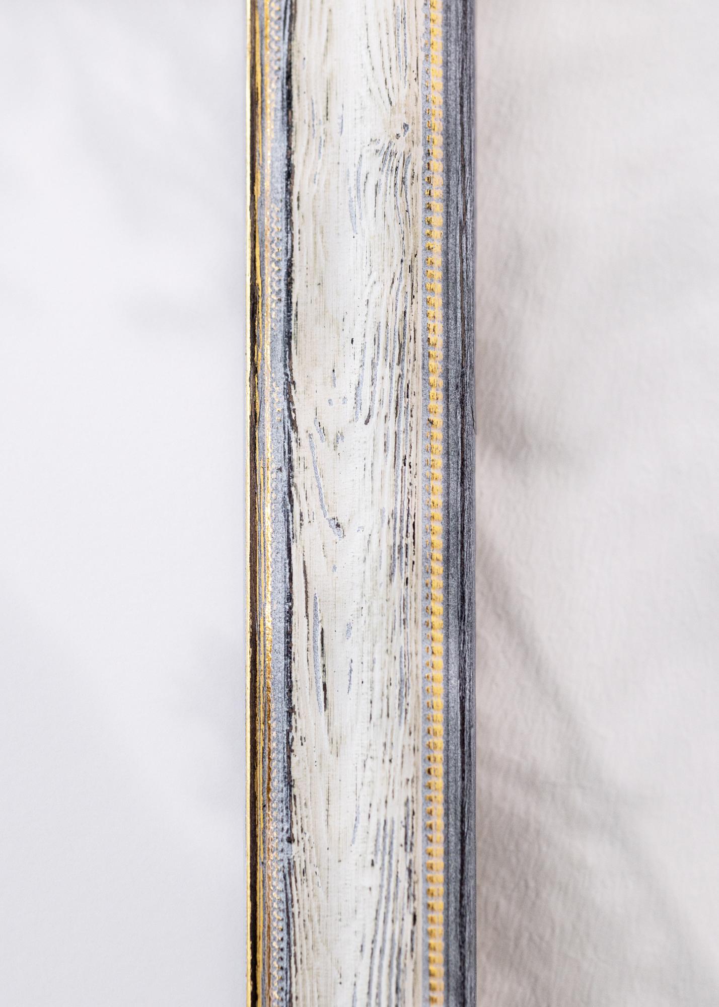 Tämä kaunis valokuvakehys on täydellinen yhdistelmä vintage-inspiraatiota ja modernia eleganssia. Maanläheinen valkoinen ja harmaa puupinta sekä hienovaraiset kullanväriset yksityiskohdat sisäreunassa luovat viehättävän ikääntyneen ilmeen. Kehys on suunniteltu 70x100 cm kokoisille kuville, mikä tekee siitä ihanteellisen korostamaan suosikkivalokuviasi tai taideteoksiasi ajattomalla ja hienostuneella tyylillä.