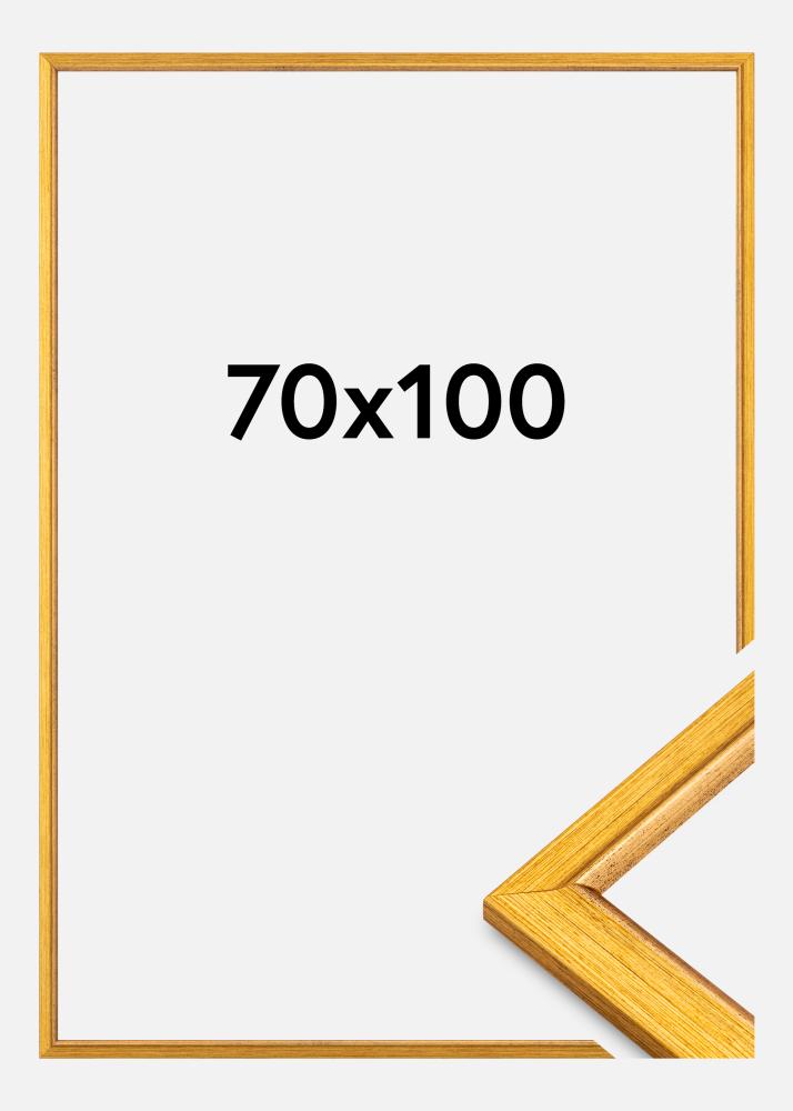 Tämä tyylikäs kultainen valokuvakehys on täydellinen yhdistelmä tyyliä ja toiminnallisuutta. Sen kevyesti profiloitu muotoilu antaa hienostuneen ilmeen mihin tahansa huoneeseen. Kehys on valmistettu Italiassa ja huokuu laatua ja ammattitaitoa. Se on erityisesti suunniteltu sopimaan 70x100 cm kokoisille aiheille, mikä tekee siitä ihanteellisen suuremmille taideteoksille tai valokuville.