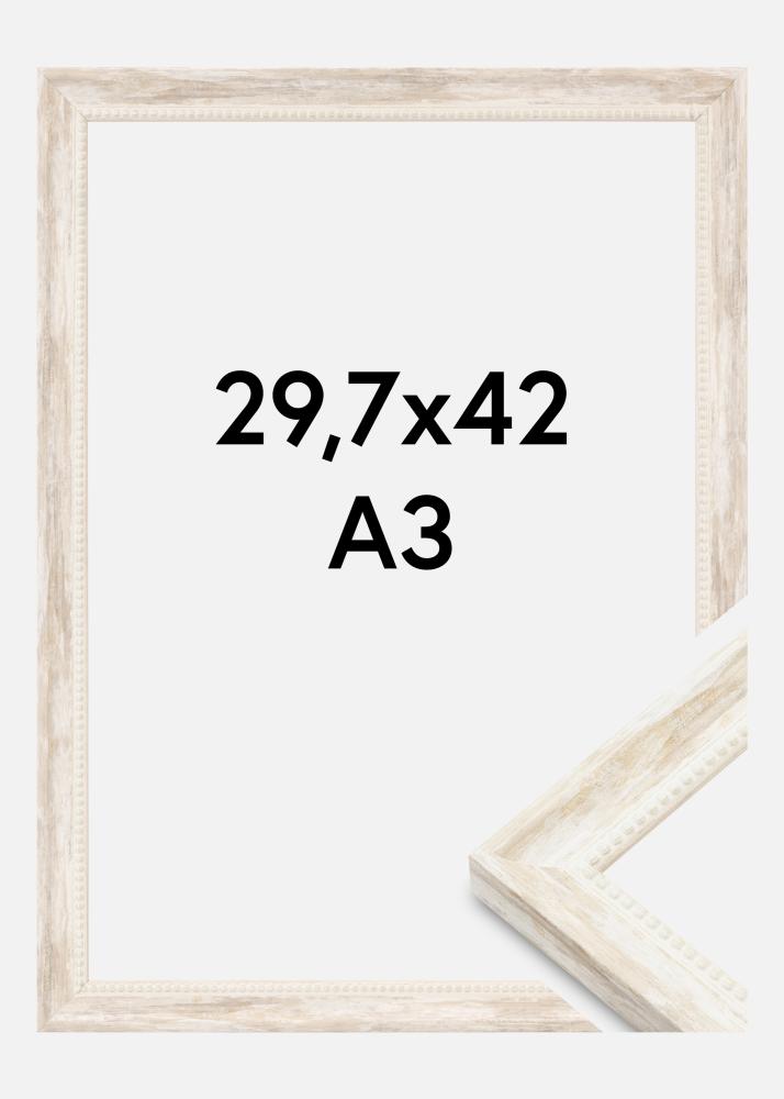 Tämä kaunis valokuvakehys, jonka koko on 29,7x42 cm, on täydellinen yhdistelmä rustiikkista viehätystä ja tyylikästä eleganssia. Valkean värinsä ja koristellun helmireunuksensa ansiosta se tarjoaa hienovaraisen antiikkitunnelman, joka korostaa sekä taideteoksia että valokuvia. Kehys on valmistettu puusta, mikä antaa sille vankan ja kestävän rakenteen.