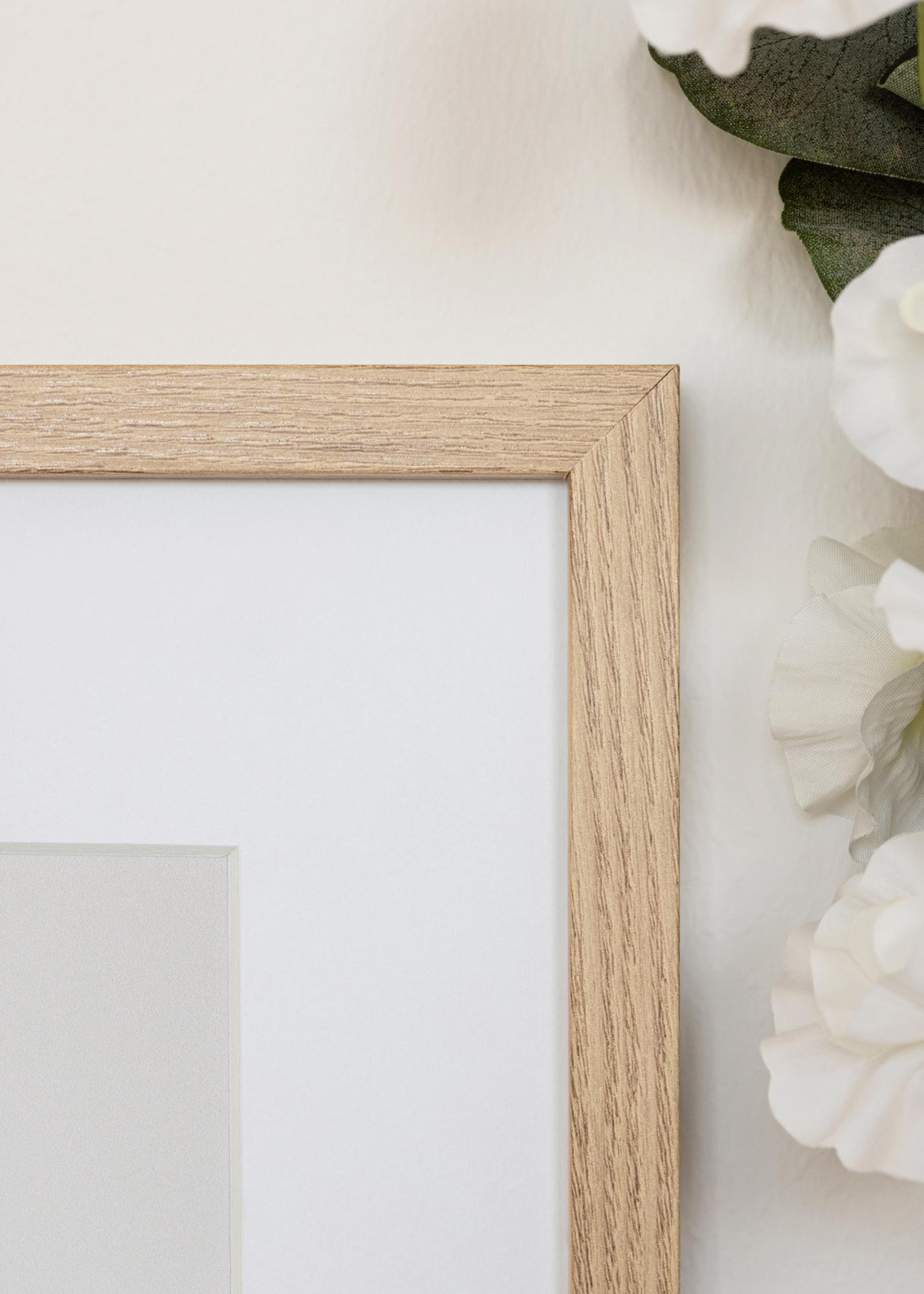 Valokuvakehys on valmistettu MDF:stä, jonka pinta on tammiviilua. Kapean listaprofiilin leveys on 14 mm. Kehyksen 12 mm huulloksen ansiosta voit täydentää kehystyksesi ylellisellä paspatuurilla.