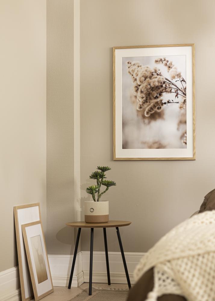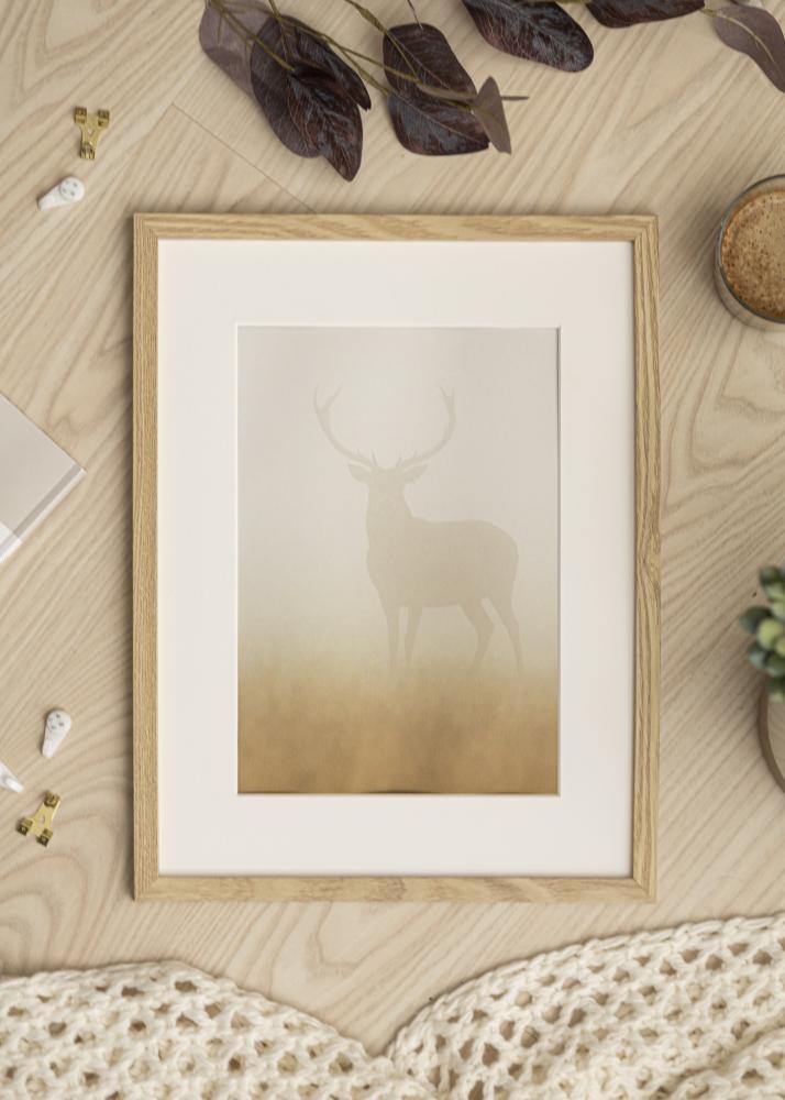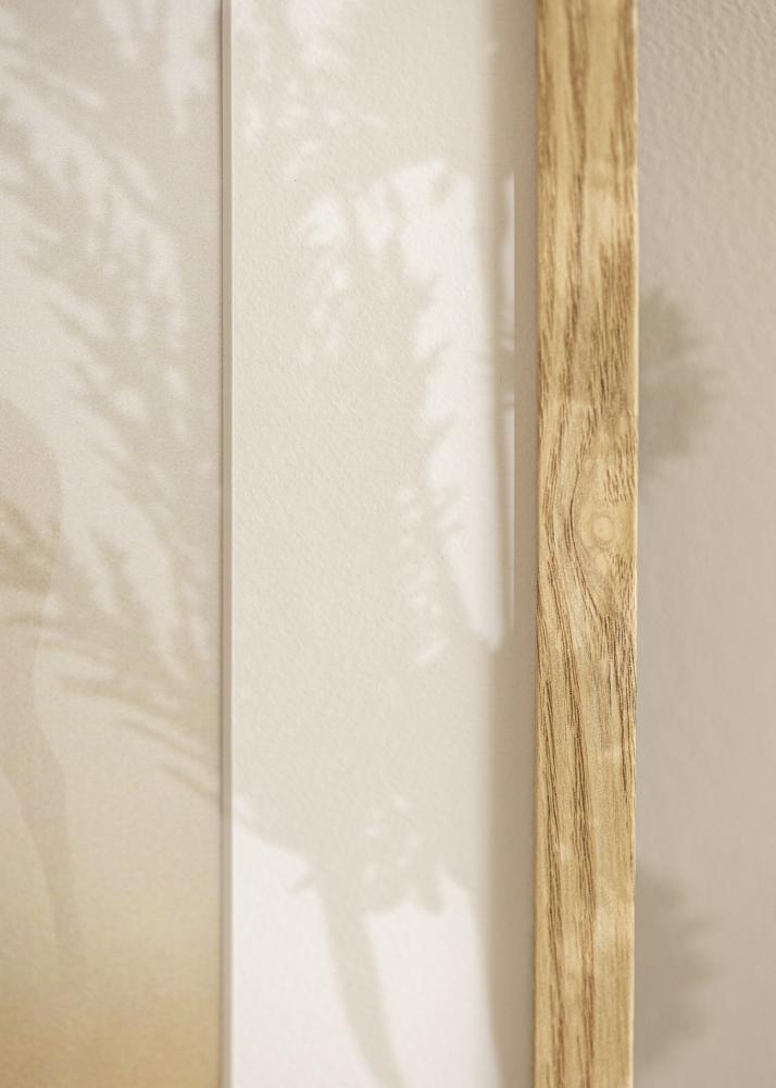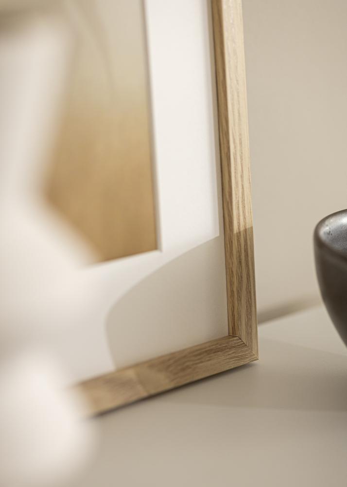 Valokuvakehys on valmistettu MDF:stä, jonka pinta on tammiviilua. Kapean listaprofiilin leveys on 14 mm. Kehyksen 12 mm huulloksen ansiosta voit täydentää kehystyksesi ylellisellä paspatuurilla.