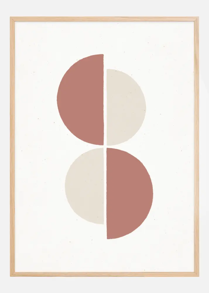 Tämä tyylikäs ja nykyaikainen juliste erottuu yksinkertaisuudellaan ja eleganssillaan. 'Rust and Sand - Duo' on leikkiä geometrialla ja värillä, jossa kaksi puolikasta ympyrää, rustiikkinen ruosteensävy ja pehmeä hiekkasävy, luovat kiinnostavan visuaalisen kontrastin. Kuvio voi inspiroida mietiskelyyn ja sopii erinomaisesti minimalistisiin tai moderneihin sisustustyyleihin, jotka keskittyvät puhtaisiin linjoihin ja hienovaraisiin väreihin.