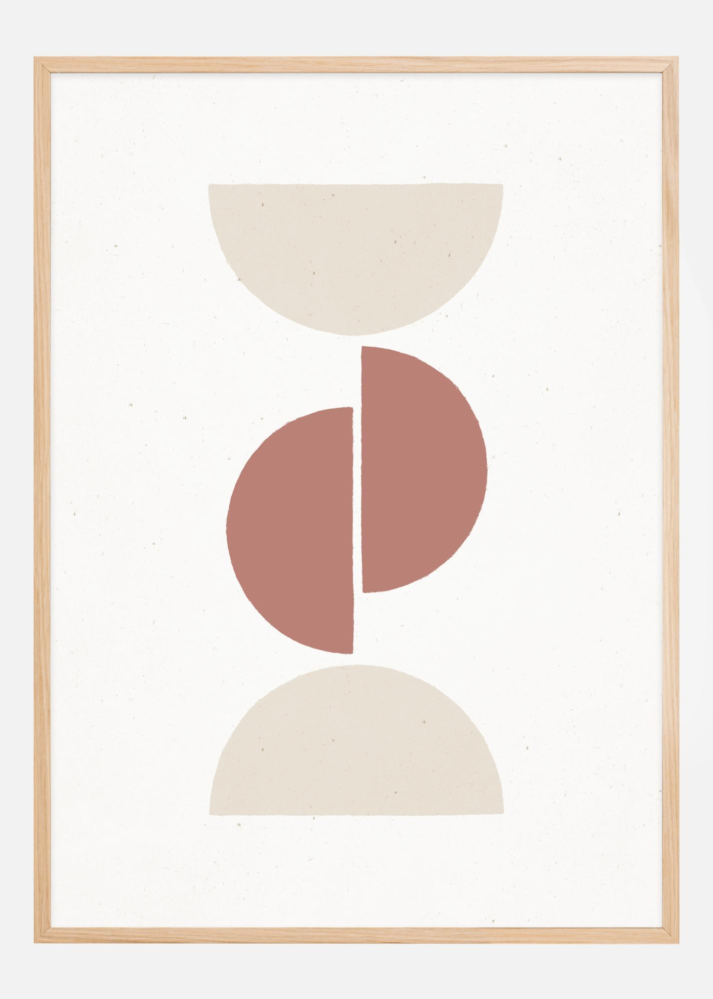 Tämä taiteellinen juliste, nimeltään 'Rust and Sand - Geo', esittelee kokoelman abstrakteja, geometrisia muotoja harmonisessa tasapainossa maanläheisissä väreissä. Suunnittelu yhdistää puolikuut ja ympyrän segmentit ruosteisen punaisina ja hiekkasävyisinä, jotka korostavat toisiaan ja luovat tunteen tilasta ja tasapainosta. Se on tyylikäs ja moderni tulkinta geometrisesta minimalismista, joka sopii täydellisesti skandinaaviseen tai nykyaikaiseen sisustukseen.