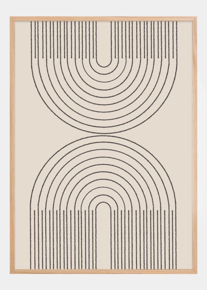 Tämä minimalistinen juliste vangitsee yksinkertaisuuden olemuksen virtaviivaisella arkkitehtonisella suunnittelullaan. Tarkkuudella piirretyt tyylikkäät kaaret luovat rauhallisuuden ja rakenteen tunteen, kun taas musta valkoisella taustalla tarjoaa selkeän visuaalisen kontrastin, joka on sekä rohkea että yksinkertainen. Tämä taiteellinen esitys on sekä moderni että ajaton, sopien monenlaisiin sisustustyyleihin.