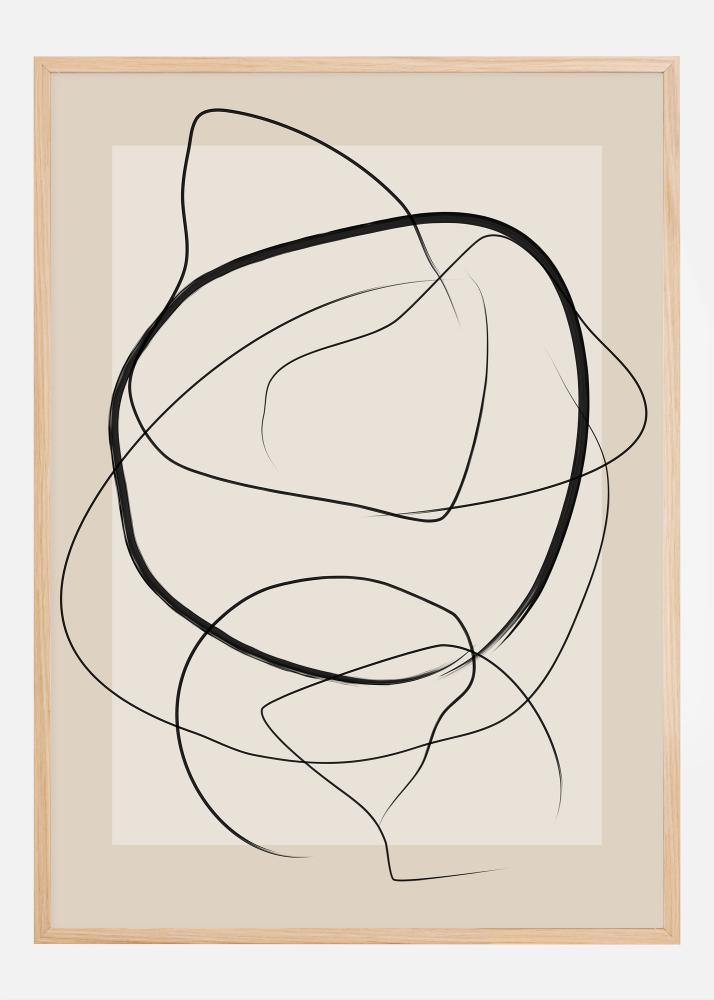 Tämä nykyaikainen juliste on osa taidekokoelmaamme ja esittelee sarjan pehmeitä, kaarevia viivoja, jotka muodostavat abstraktin ja meditatiivisen sommitelman. Mustat viivat kulkevat vapaasti beigellä taustalla, luoden liikkeen ja rytmin tuntua, samalla kutsuen katsojaa hetken mietiskelyyn. Tämä minimalistinen mutta rohkea taide sopii täydellisesti niille, jotka arvostavat abstraktin ilmaisun voimaa avata henkilökohtaiselle tulkinnalle ja sisäiselle pohdinnalle.