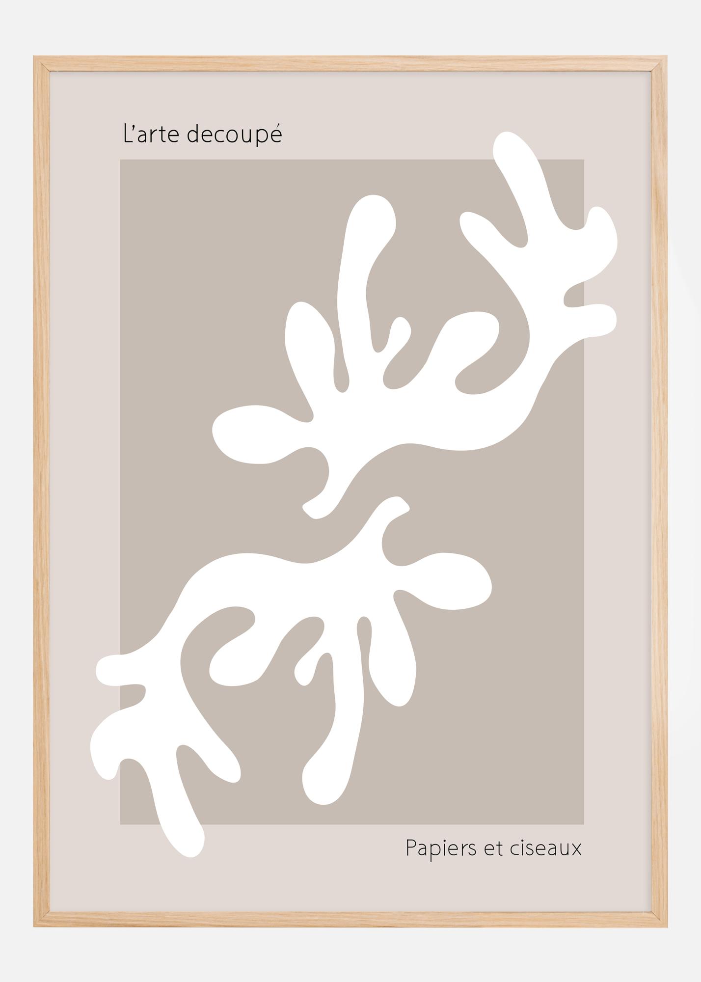 Anna huoneellesi raikas ja nykyaikainen ilme tällä tyylikkäällä ja modernilla julisteella kokoelmastamme. 'L'arte découpé', silmiinpistävä taideteos, käyttää harmaan ja valkoisen sävyjä esittämään abstrakteja muotoja, jotka herättävät ajatuksia merielämästä ja luonnosta. Tämä printti on yksinkertaisuuden kauneuden kunnianosoitus, sen puhtailla linjoilla ja pehmeillä ääriviivoilla, jotka luovat harmonisen sommitelman. Se on ihanteellinen sisustuselementti minimalistisesti sisustettuihin koteihin tai toimistoihin, jotka etsivät hienostunutta ja hillittyä taiteellista ilmaisua.