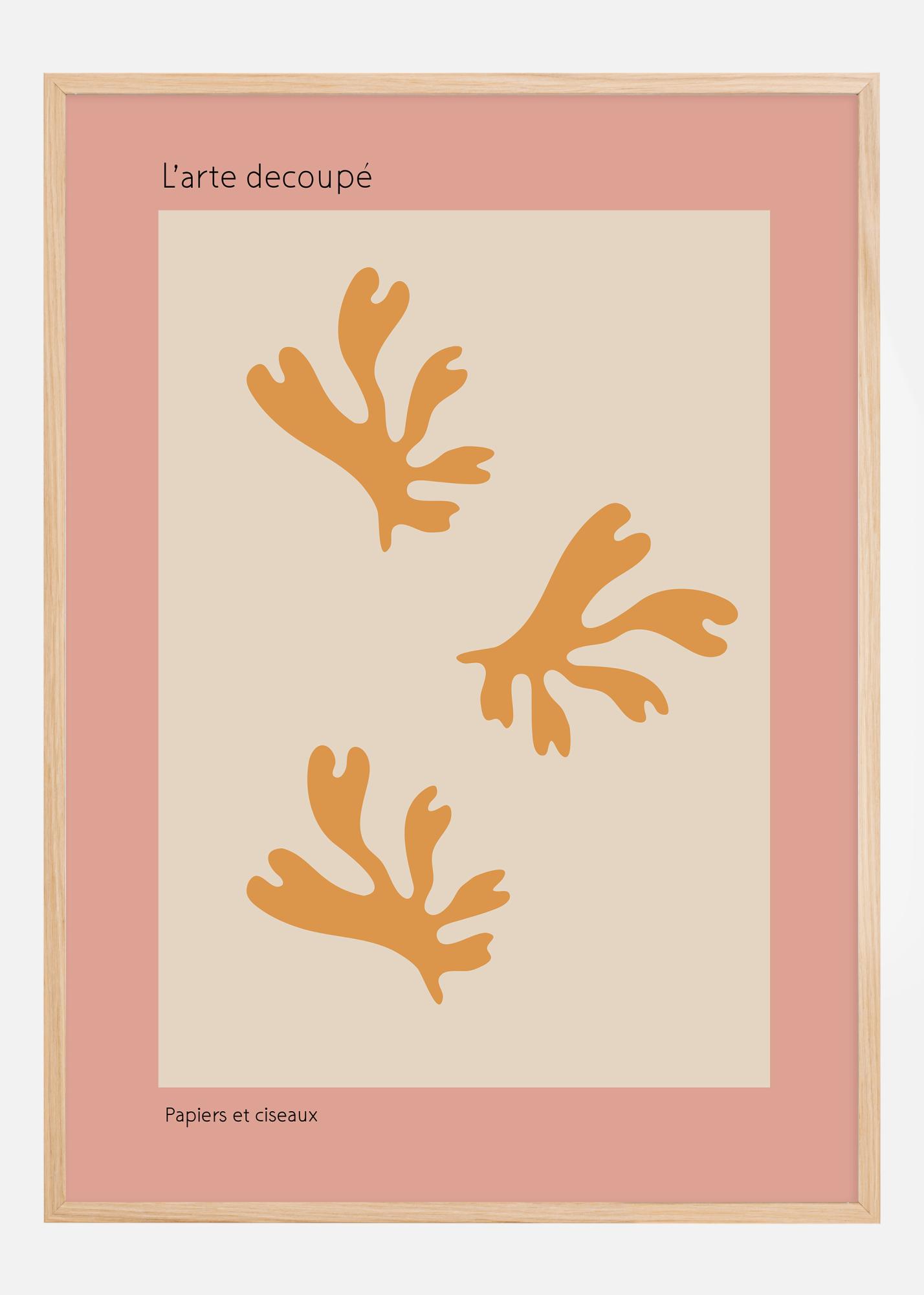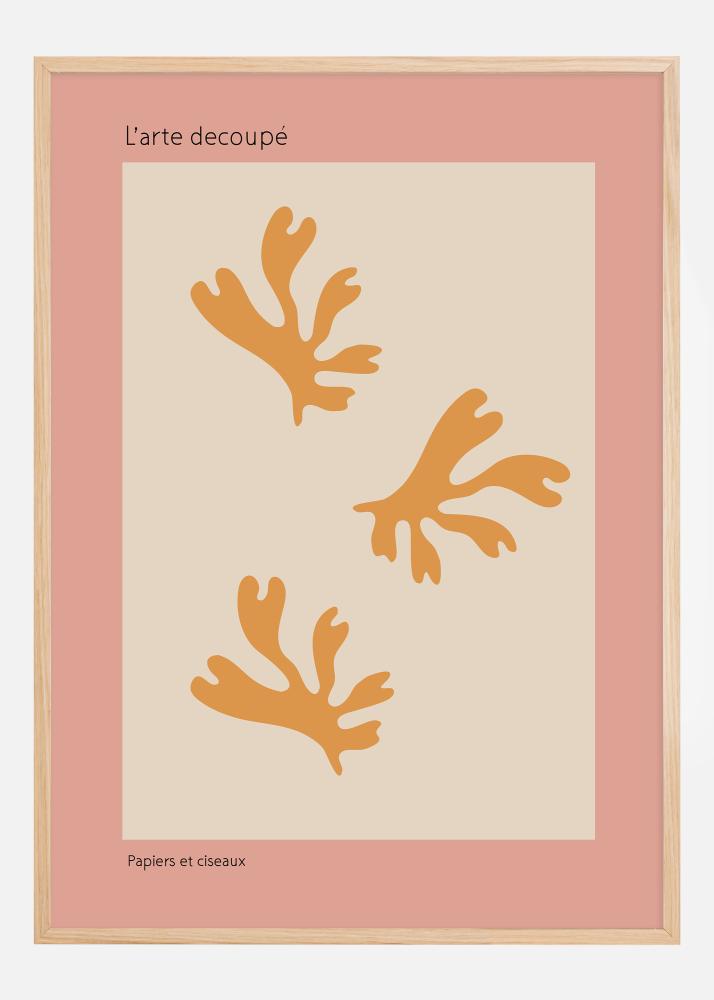 Löydä minimalistisen muotoilun hienovarainen kauneus uusimmasta julistekokoelmastamme. Tämä tyylikäs printti, nimeltään 'L'arte découpé', esittelee kolmen abstraktin muodon yhdistelmän, jotka muistuttavat korallia tai merikasveja, toteutettuna lämpimässä aprikoosin ja beigen sävyjen paletissa rauhoittavaa kermanväristä taustaa vasten. Nämä orgaaniset muodot on leikattu tarkasti ja ne leijuvat pinnalla, luoden liikkeen ja vapauden tuntua. Täydellinen niille, jotka haluavat lisätä ripauksen hienostunutta yksinkertaisuutta kotiinsa tai toimistoonsa, tämä printti on modernin estetiikan statement.