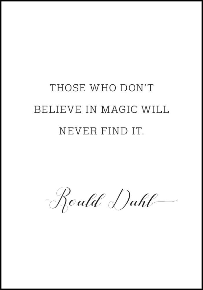 https://www.bga.fi/those-who-dont-believe-in-magic-will-never-find-it51024363Those who don't believe in magic will never find ithttps://www.bga.fi/resource/u2vG/0dl/TCgOWYTiUf2/Affischer-Posters/2018-08/med-ram/quotes_mar_2018-2-02.jpghttps://www.bga.fi/resource/u4eq/4L6/H7CD8pfIZm7/Prints/Category/quotes_mar_2018-2-02.jpg5.95EURDiscontinued/JulisteetUpea juliste koristamaan kotisi seinälle, käy yhtä hyvin yksin seinälle ripustettavaksi, kuin yhdessä muiden painotuotteiden kanssa tauluseinänä. Täydennä julistetta tyylipuhtaalla taulukehyksellä, joka sulautuu huoneen sisustukseen ja samalla korostaa motiivia luoden kauniin kokonaiskuvan ympäristöön.Juliste painetaan meidän omassa painatus-studiossamme, 230 gramman premium luokan, vanhentumattomalle paperille. Olemme valinneet mattapintaisen vahvan paksuuden, koska se antaa kauniin ja tasokkaan tulosteen ilman heijastuksia. Kun tulostamme tuotteen itse voimme myös omalta osaltamme vähentää ympäristövaikutuksia.Kehys ei sisälly, mutta voidaan tilata.Bildverkstad13x18 cm13x18 cm2018-08-14T21:22:29+02:00