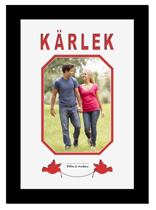 Tyylikäs valokuvankehys, jonka mukana tulee romanttinen passepartout. Tyylikkään kuvakehyksen viimeistelee paikka, johon voi kirjoittaa pariskunnan nimet.