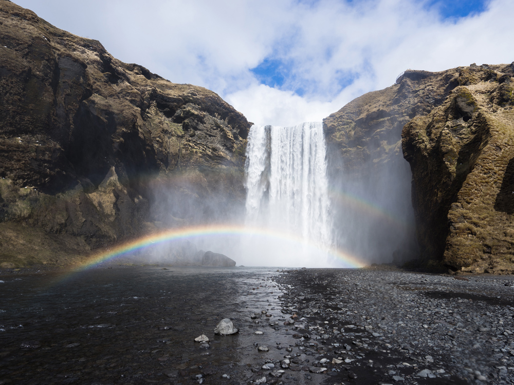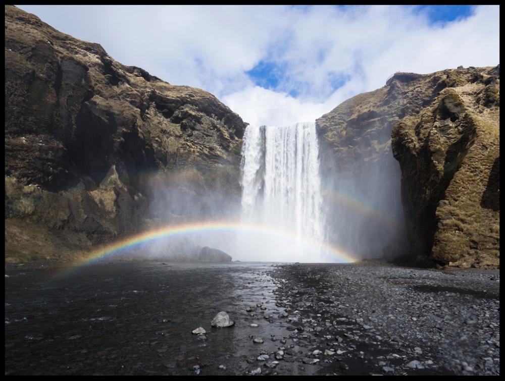 Juliste ryöppyävästä vesiputouksesta ja sateenkaaresta, joka heijastuu pyörteilevästä vedestä. Valokuva, jossa luonnonläheiset sävyt luovat kontrastia valkoista vettä ja pilviä vasten. Ripusta muiden luontoaiheisten kuvien joukkoon tai kerää sarja ja yhdistä "Vesiputous II" -teoksen kanssa. Sopii niin metalli- kuin puukehyksiinkin, valitse sisustukseesi sopivin kehys.