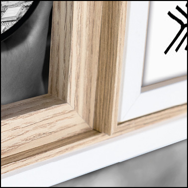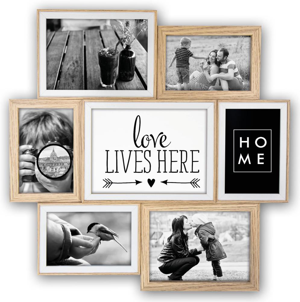 Tyylikäs puinen kollaasikehys, jossa tilaa 7 erikokoiselle kuvalle.
