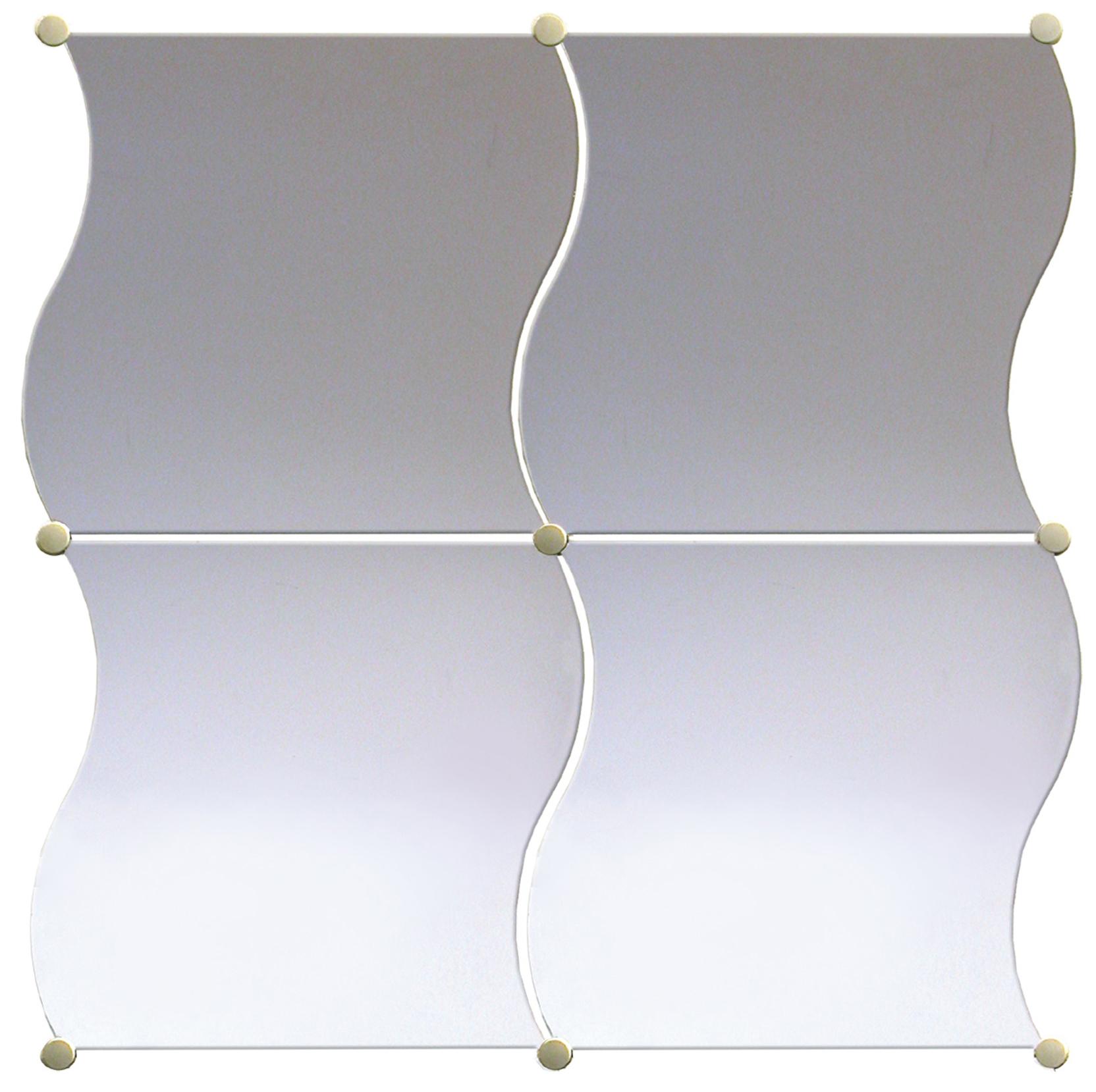 Täydellinen paketti, kun haluat suunnitella oman peiliseinän. Aallonmuotoiset peilikappaleet, joiden syvyys on 3 mm ja koko 30x30 cm, myydään 4-pakkauksessa yhdessä 10 kiinnikkeen kanssa, jotka voit helposti yhdistää ja tehdä niin suuren peiliseinän kuin haluat.