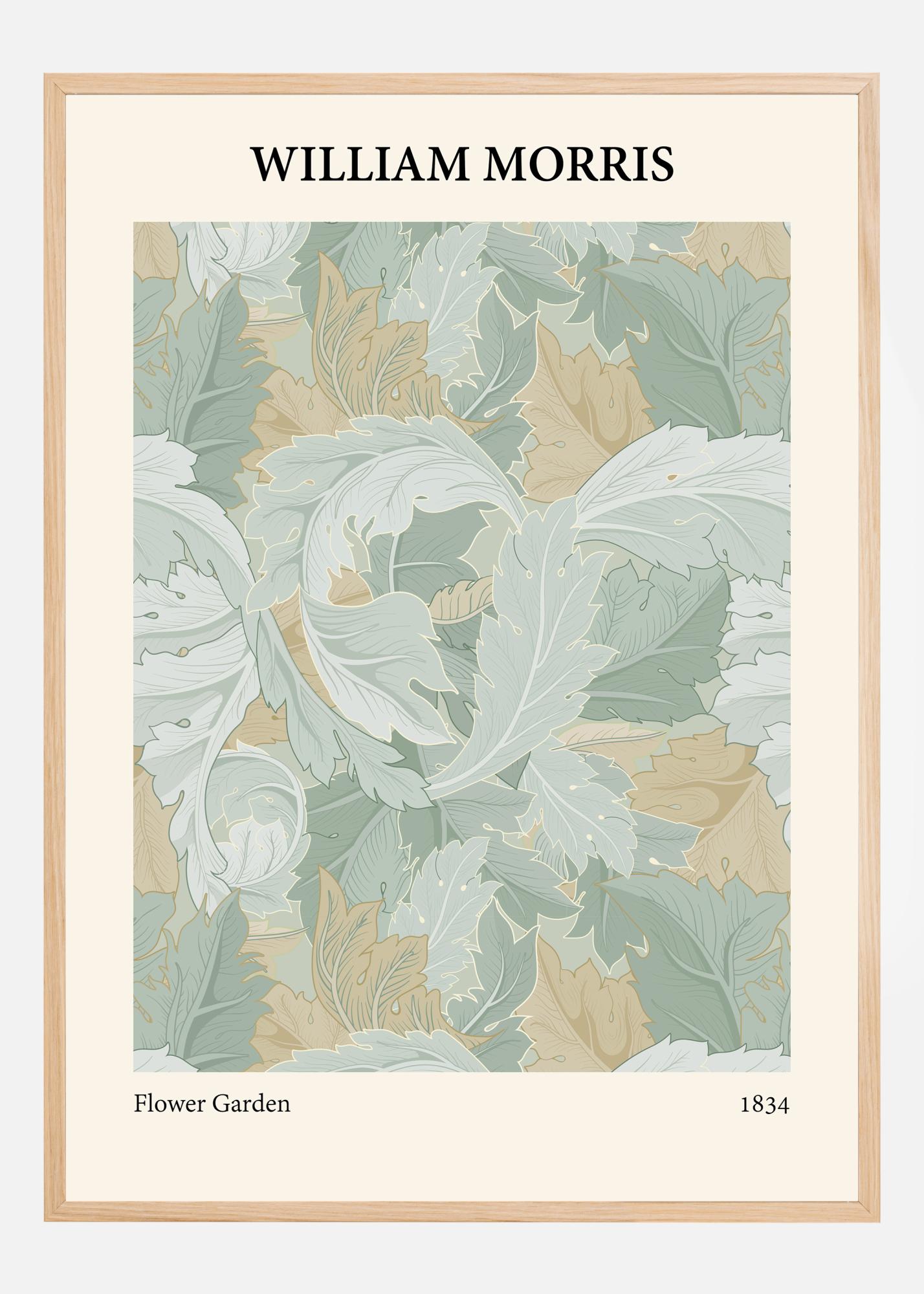 Tämä tyylikäs ja kiehtova juliste on kunnianosoitus William Morrisille ja hänen unohtumattomalle panokselleen designiin ja taiteeseen. Sen "Kukkatarha"-aiheella tämä printti esittelee hienostuneen sommitelman lehvästöjä ja kukkaisia muotoja, jotka kietoutuvat toisiinsa rauhoittavan sinivihreän ja lämpimien beigejen sävyjen väripaletissa. Jokainen elementti on muotoiltu Morrisille ominaisella yksityiskohtaisuudella, mikä luo syvyyden ja monimutkaisuuden tunteen, jota voi arvostaa jokaisella silmäyksellä.
