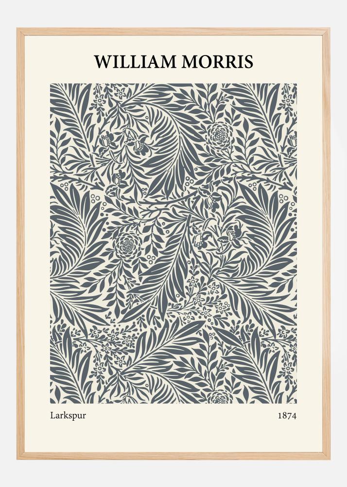 Tämä William Morris -juliste vuodelta 1874, nimeltään "Larkspur", korostaa Morrisin suunnittelulle ominaista hienovaraista yksityiskohtaisuutta ja orgaanista kauneutta. Aihe, jossa kukkii monimutkaisia kukkia ja lehvistöä, säteilee ajattoman eleganssia, joka täydentää sekä perinteisiä että nykyaikaisia tiloja. Suunnittelu on klassinen edustus Arts and Crafts -liikkeen arvoista, joissa käsintehty laatu ja luonnonläheiset teemat ovat keskiössä.
