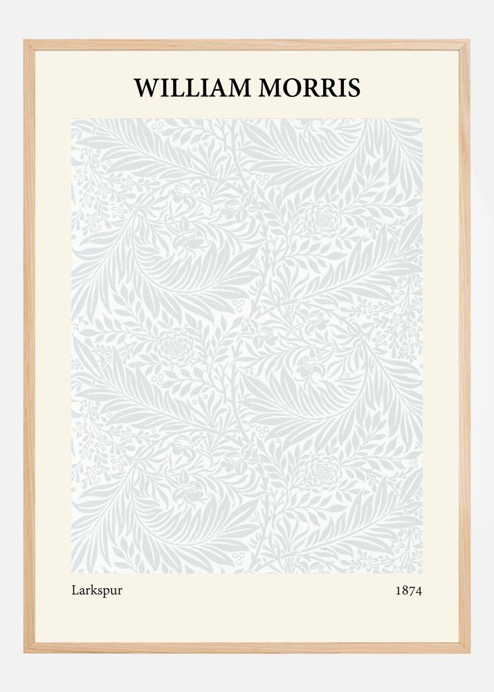 Tämä herkkä ja yksityiskohtainen William Morris -juliste nimeltä "Larkspur" vuodelta 1874 on erinomainen esimerkki klassisesta Arts and Crafts -tyylistä. Kuvio on kukoistavien leijonankitojen ja hienostuneiden lehtien labyrintti, kauniisti esitetty yhtenäisessä värisävyssä. Design on hienostunut ja hienovarainen, mikä tekee tästä julisteesta ihanteellisen lisän rauhalliseen ja keräiltävään ilmeeseen kodissa.