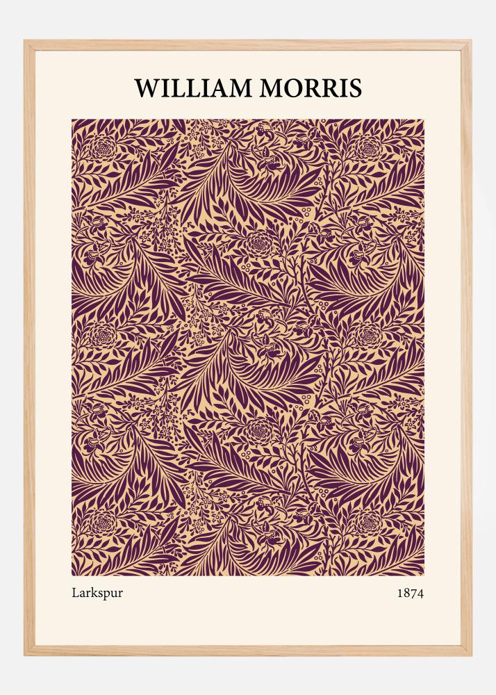 Tämä rohkea ja kiehtova William Morris -kuvio on juliste, joka herättää henkiin klassisen "Larkspur"-designin vuodelta 1874. Elävällä viininpunaisen ja beigeen paletilla tämä printti vangitsee Morrisin mieltymyksen luonnon ja kuvioiden esittämiseen. Hänen mestarillinen työnsä muodon ja värin kanssa korostaa jokaista yksityiskohtaa lehvästössä ja kukissa, tehden julisteesta merkittävän koristeellisen aksentin.