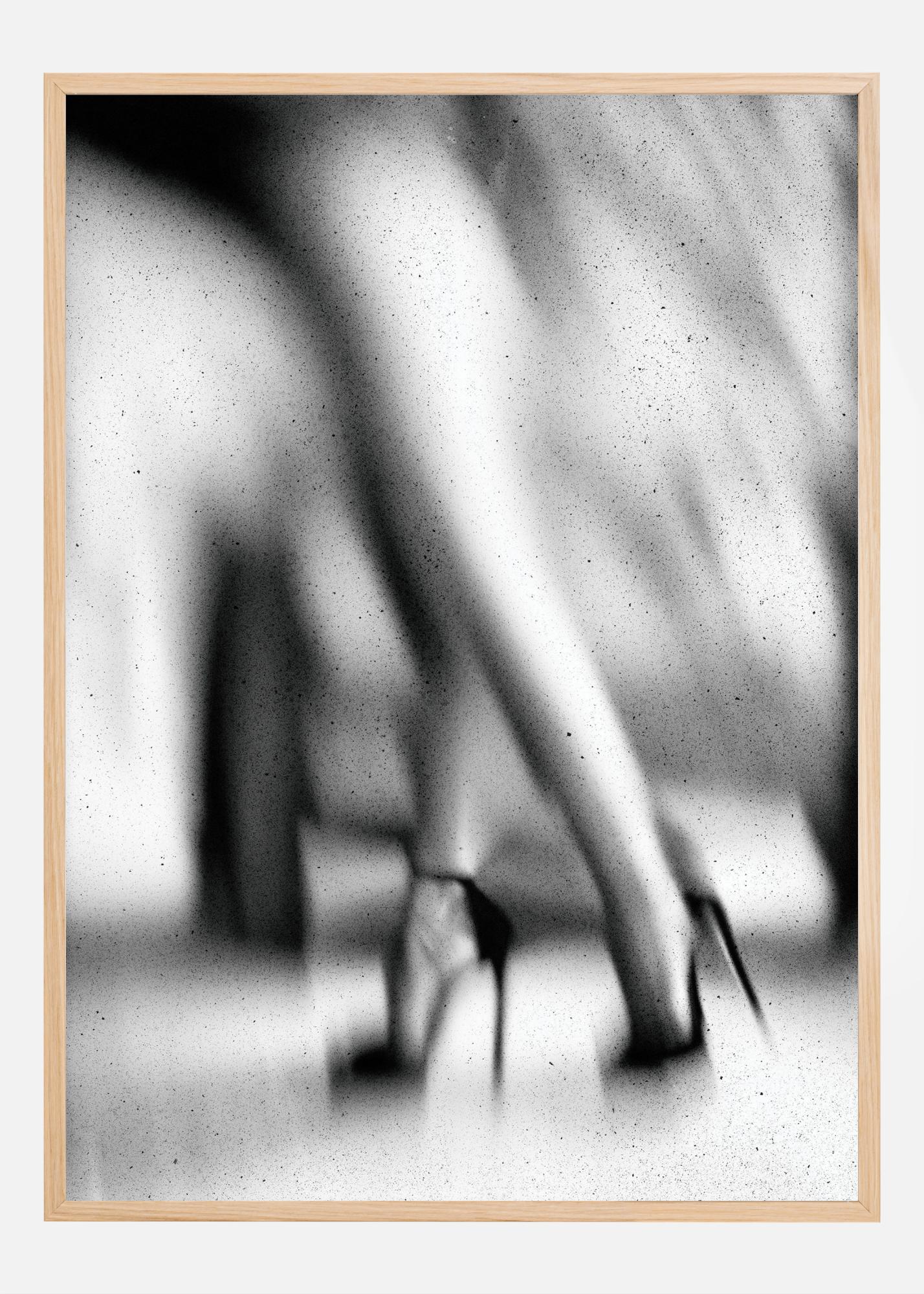 Tämä taiteellinen juliste leikkii sumeudella ja kontrastilla luodakseen liikkeen ja abstraktion tunteen. Se kuvaa paria jalkoja korkokengissä, luoden ilmakehän ja lähes liikkeen sumeita, mikä antaa teokselle eteerisen ja dynaamisen tunteen. Julisteen yksivärinen värimaailma herättää tunteen sekä ajattomuudesta että modernisuudesta.